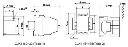 Contactor can not only use screw mounting, but also use 35mm[CJX-09~95],75mm [CJX-40~95] and2 x 35mm[CJX-115~170] international standard Din-rail mounting.