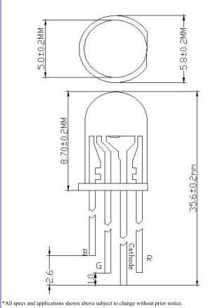 | Luminous Intensity: | RED:1000-1200mcd GREEN:3000-4000mcd BLUE:1300-1500mcd |