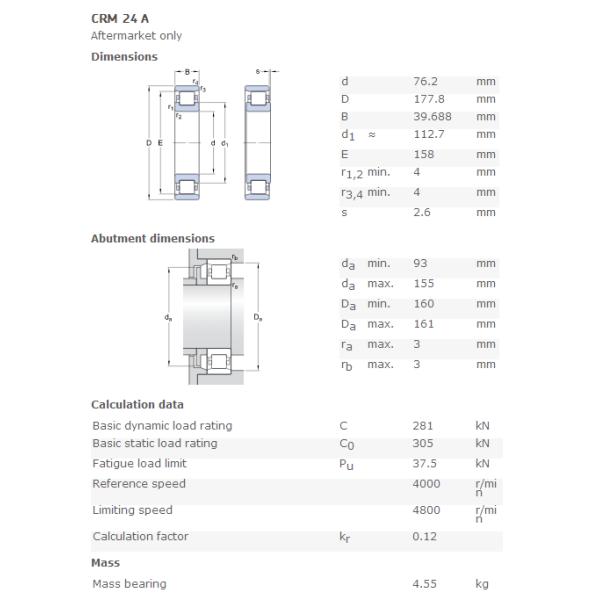 CRM24 A Bearings Specification :