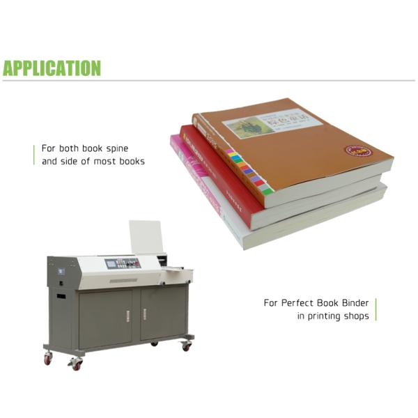 Application: for both book spine and side of most books, used on perfect book binder in printing shop.