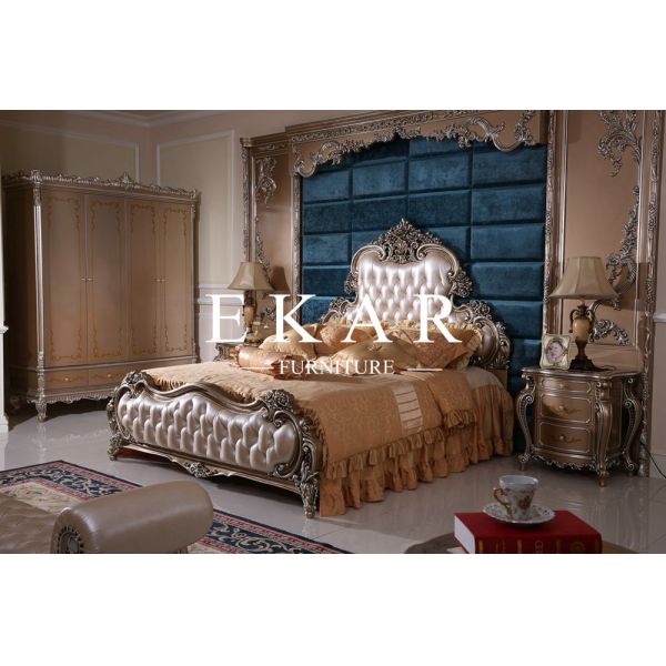 Louis XV bedroom set carvings in solid wood gilded leaf finish ivory-lacquered