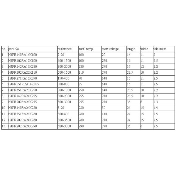 | Model NO.: | PR4 | Name: | PTC Thermistor |