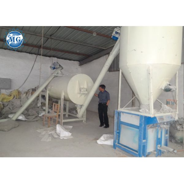 MG Simple dry mortar plant is developed on the Ribbon mixer, after add the finish product hopper, the discharge screw conveyor, the automatic packaging machine, it is one set simple dry mortar plant. Now it mainly consists of Screw conveyor, Spiral ribbon mixer, storage silo, automatic weighing and packaging machine, the structure is very simple and it is very easy operation and maintance, the capacity of this simple dry mortar production line is 3T/H.