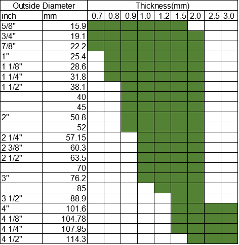 | Outside Diameter (mm) | Thickness (mm) | Length (mm) | |