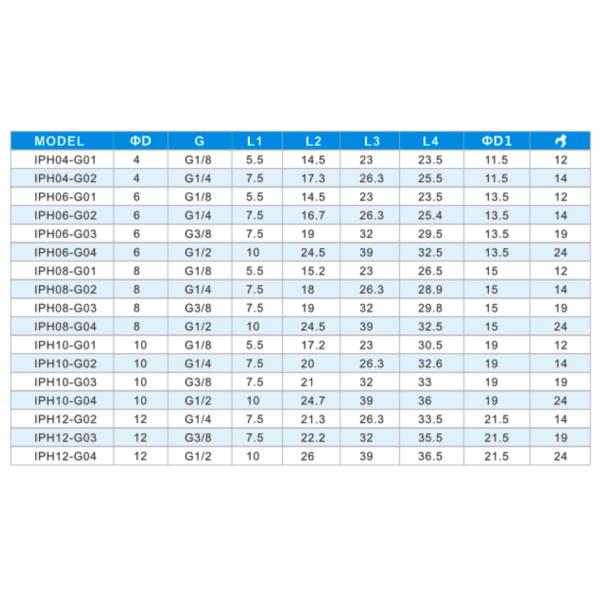 | Dia. | Φ4 | Φ6 | Φ8 | Φ10 | Φ12 | Φ16 | Φ5/32 | Φ3/16 | Φ1/4 | Φ5/16 | Φ3/8 | Φ1/2 |
