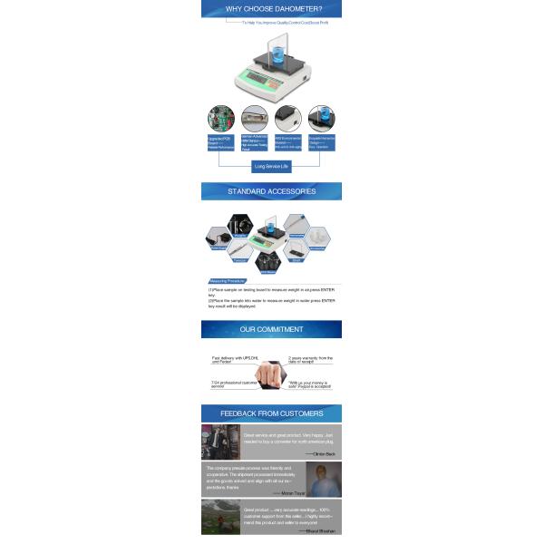 | Standard accessories | Host,measurement frame,DE-20A standard liquid measurement assembly,tweezers,thermometer,100G weight,wind and dust cover,measurement support,power transformer DE-20A standard liquid measurement assembly: Two stainless steel pothooks,one normal glass weight,one normal stainless steel weigh,two beakers. |