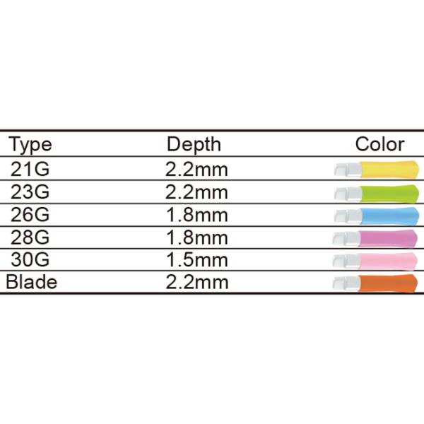 | Gauge | 18G(Blade), 21G(Blade), 21G, 23G, 25G, 26G, 28G, 30G |