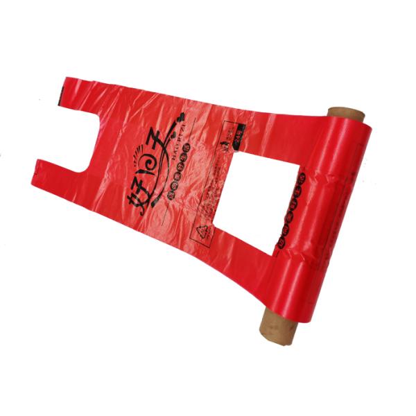China Red Easy-opening Embossed Singlet Shopping Bags T Shirt Trash Can Bags Grocery Vest Carrier Bags