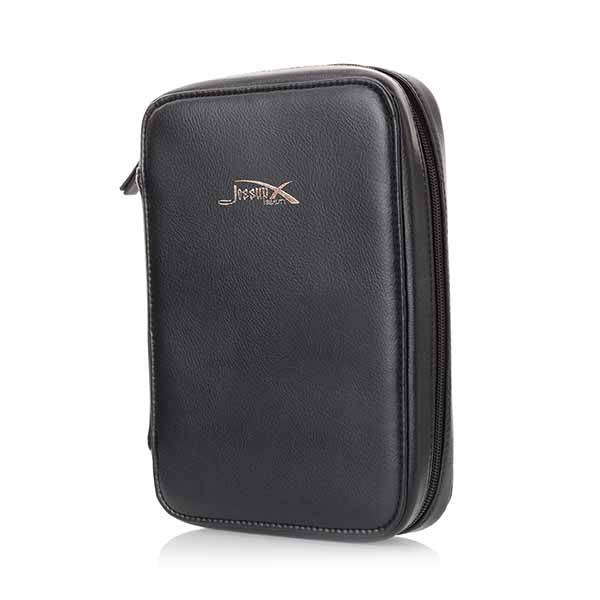 With the traditional zipper closure,holds at least 18 pieces brushes and little cosmetic products and keeps them safe and secure.