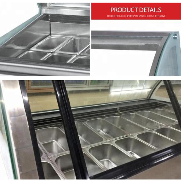 Countertop Ice Cream Display Freezer Danfoss Compressor -18~-24℃ Stainless Steel Shutters