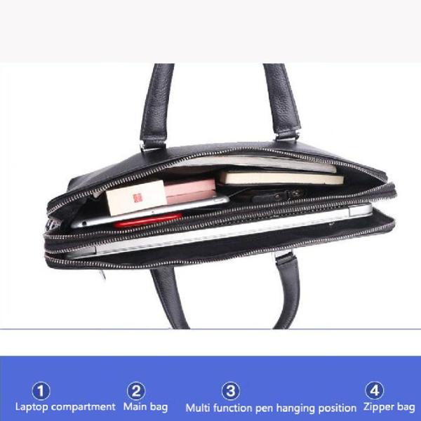Black Men'S First Layer Leather Business 14-Inch Laptop Messenger Bag