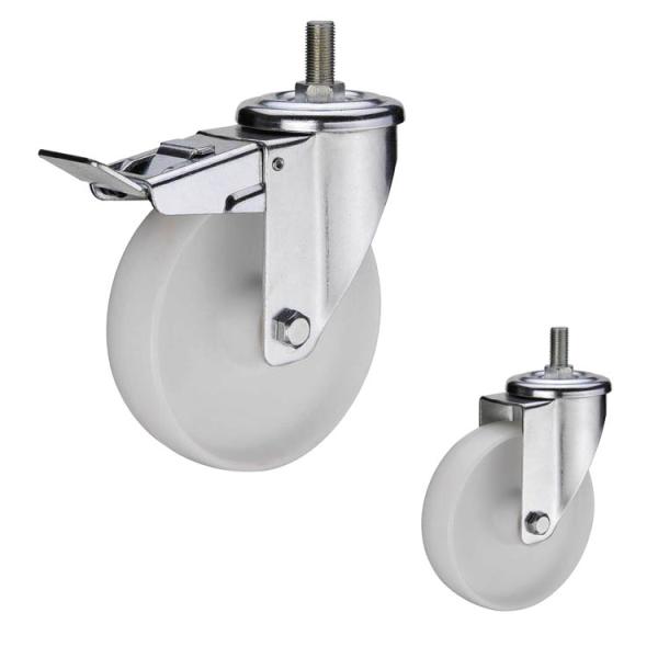 5 inch 330lbs top plate threaded stem bolt hole white nylon swivel medium duty european type industrial casters