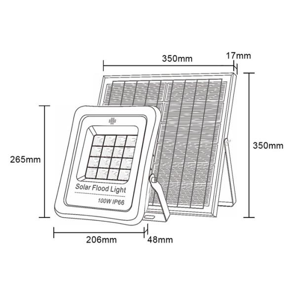 100W Solar Powered IP65 Solar Led Outdoor Flood Light High Power Long Lifespan Used In Factory And Outdoor Areas