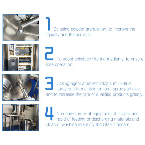 3. Mixing, granulating, and drying can be done by the same