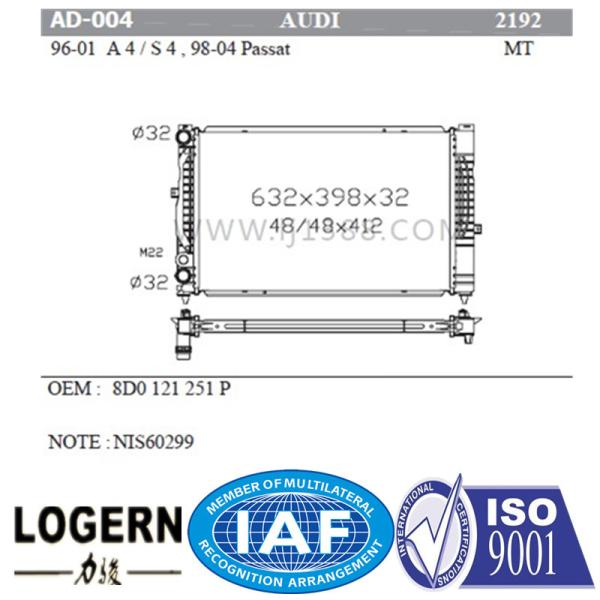 Automobile Radiator for Audi A4/S4'96-01 Passat'98-04 Mt/PA22 Dpi: 2192