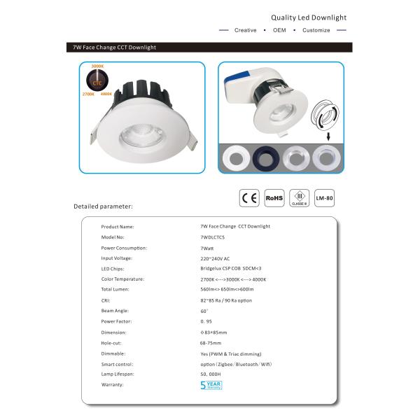 | Model Number: | 7W CCT Face cover changable fire proof led downlight |