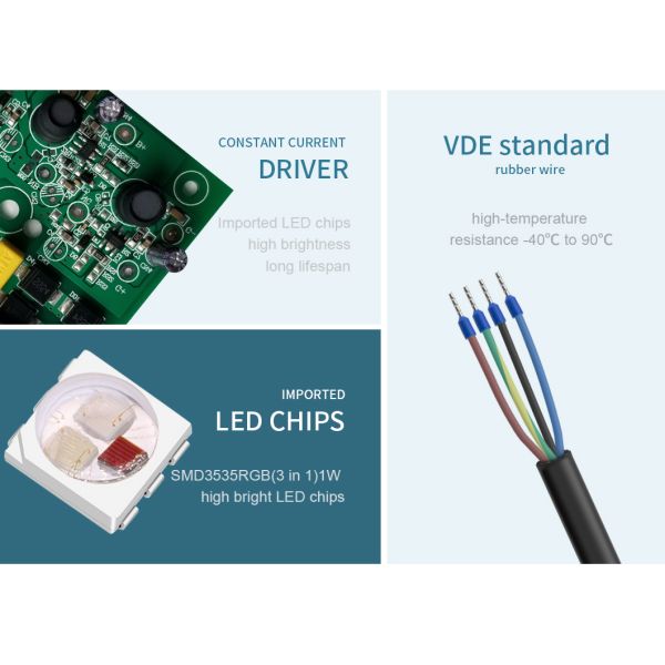 4. Low voltage constant current power supply drive,efficiency >90%,make sure the LED
