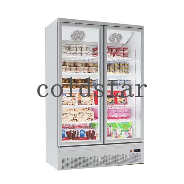 Supermarket Cold Drink Display Refrigerator 2 Glass Doors Upright Freezer