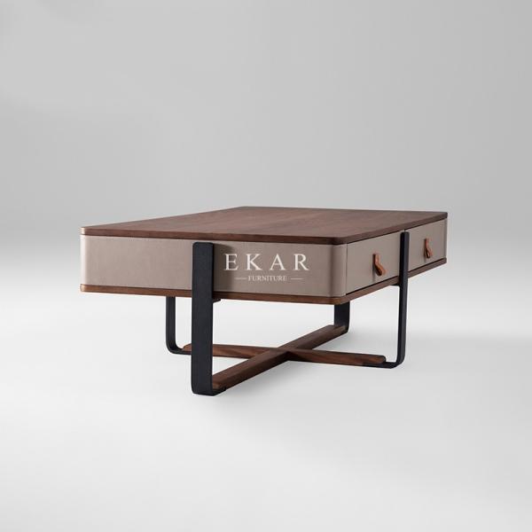 Quality 2 Drawer Wooden With Leather Rectangle Metal Frame Modern Coffee Table wholesale