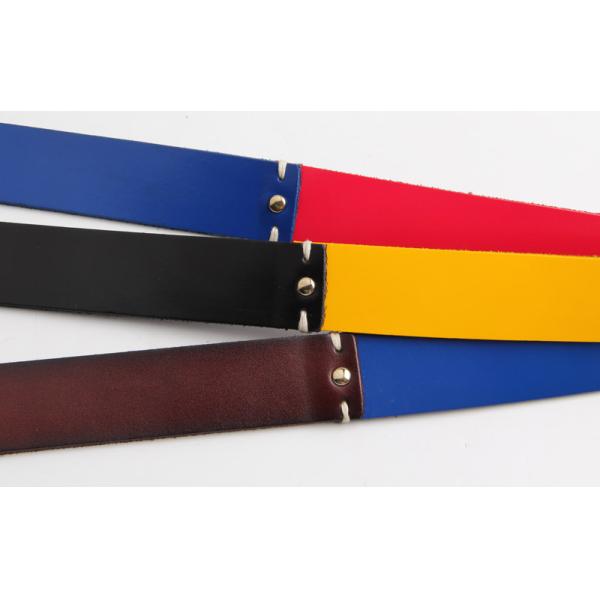 This belt strap is mixed color combined by stitching and loops also are different color.