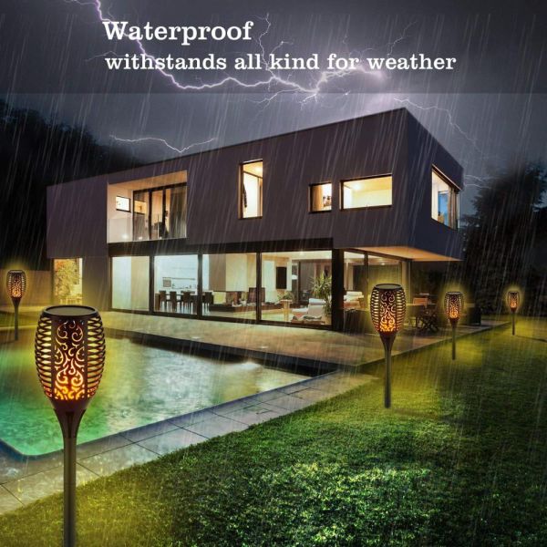 A: Waterproof IP65 and durable, this dancing flame torch light was built to withstand all kinds of weather all round year.