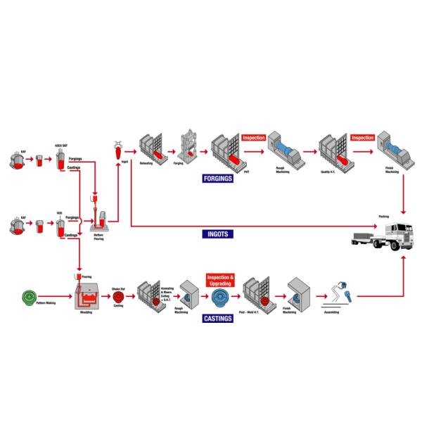 - Smelting: EAF+LF+VD (+ESR)