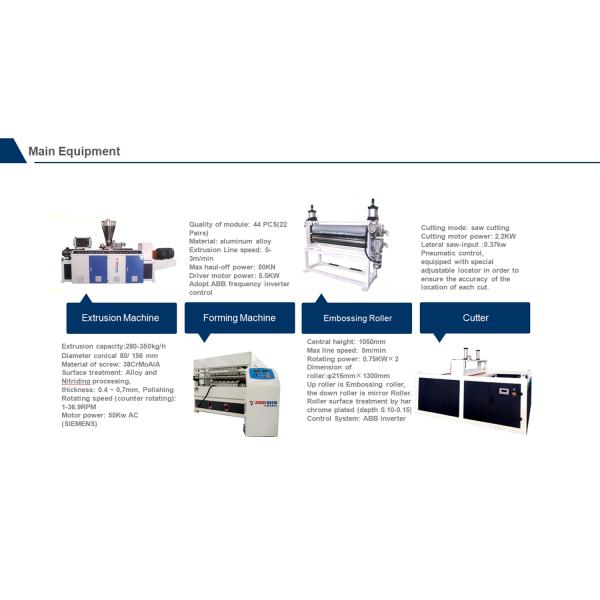 production line consists of conical twin screw extruder SJZ80/156, co-extruder, extruding tools, forming machine for main
