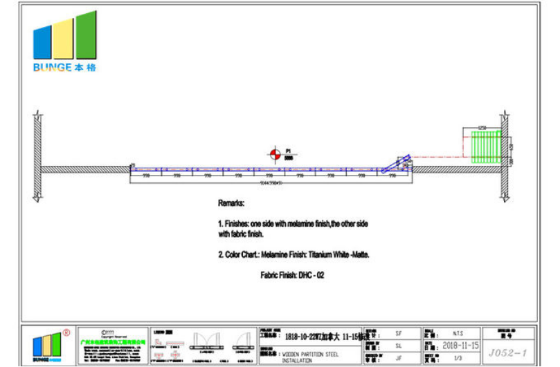 This project was finished in January,2019. Totally 1 set of wall. Size: 9144*5886 mm, around 53.8 square meters. And the client choose 2 different finishes for this project, one is for melamine, the other is fabric finish.