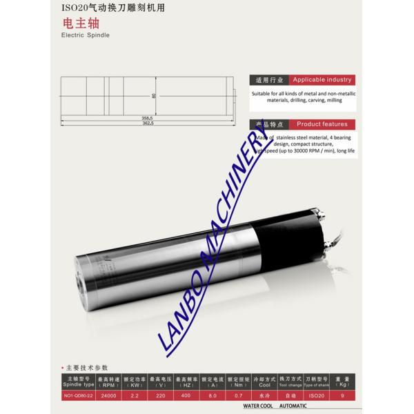 2.2Kw AC220V 24000RPM ATC Water cooled spindle motor ISO20 Automatic Spindle motor equiped with JAPAN orginal NSK bearing ensure you 2years quality guarantee period.