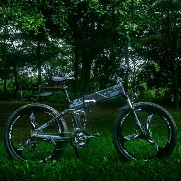 OEM TOP-860 battery powered operated electric bicycle bike folding ebike 26 inch mountainbike full suspension