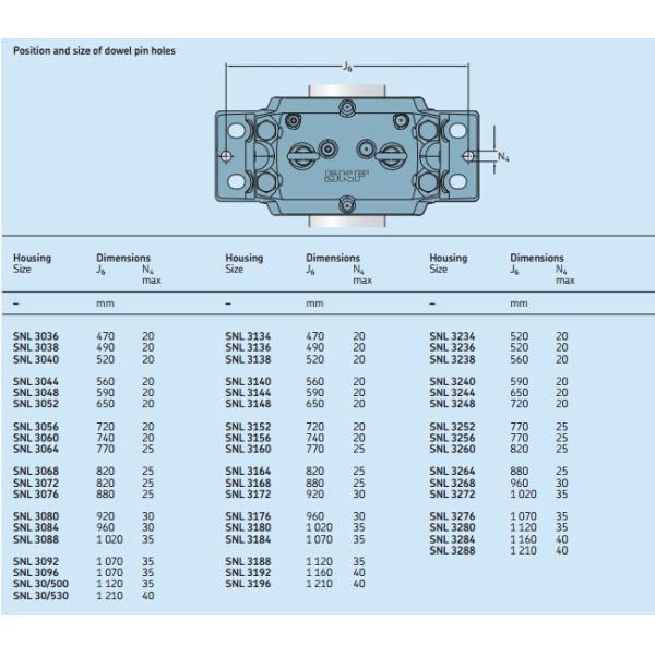 SNL plummer block housings are made of grey cast iron. For applications where the strength of grey cast iron is inadequate, dimensionally equivalent housings made of spheroidal graph-ite cast iron can be supplied. These housings are only available with four cast attachment bolt holes (series FSNLD) or without any holes in the base (series SSNLD).