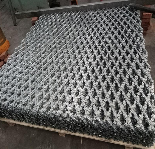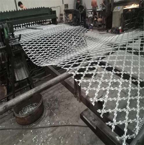 straight-blade netting welded together,packaging into a roll form for transport. Welded Razor Tape Fence