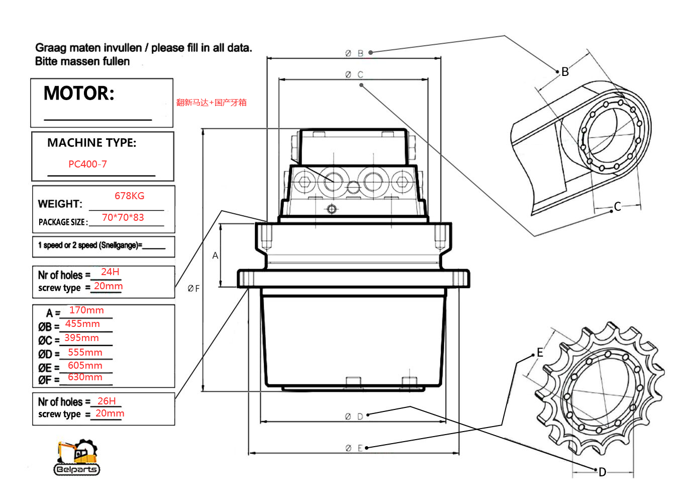 Excavator attachments PC400-7 final drive 706-8J-01012 706-8J-01011