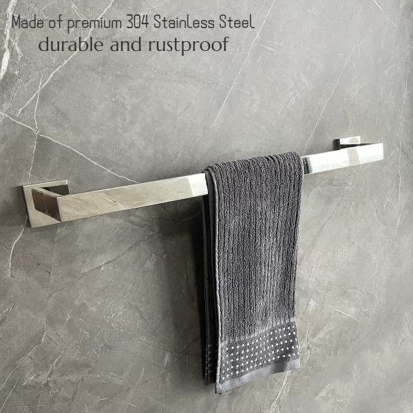 Bathroom towel bars Brushed silve, Stainless Steel Towel Rack Wall Mounted, Modern Square Towel Holder Towel Rod