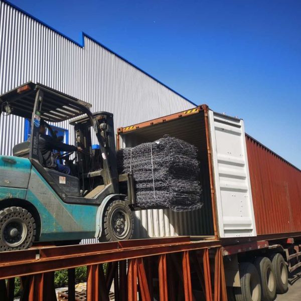 hexagonal woven wire mesh. It is usable for the control of rivers