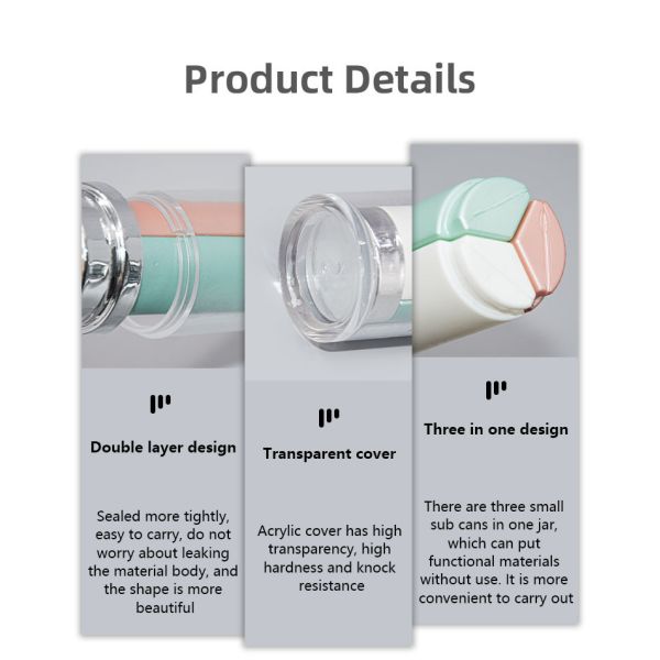| Plastic Type: | PP+HDPE+PMMA | Capacity: | 15+15+15ml |
