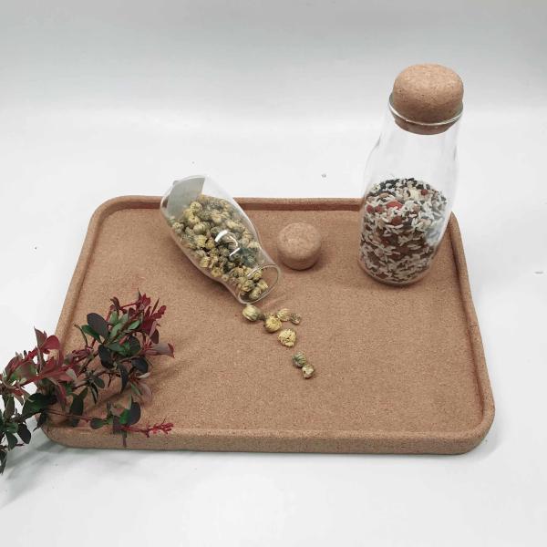 The rectangular cork tray is made of eco-friendly cork. Cork is natural, sustainable, renewable and recyclable material. Cork brings soft natural touch to any table setting. And it provides good insulation for any surface from hot mugs to teapots. With its modern, concise style, our cork tray matches widely different interior design. Moreover, its impermeable nature and raised edges ensures it’s a practical addition to any home.