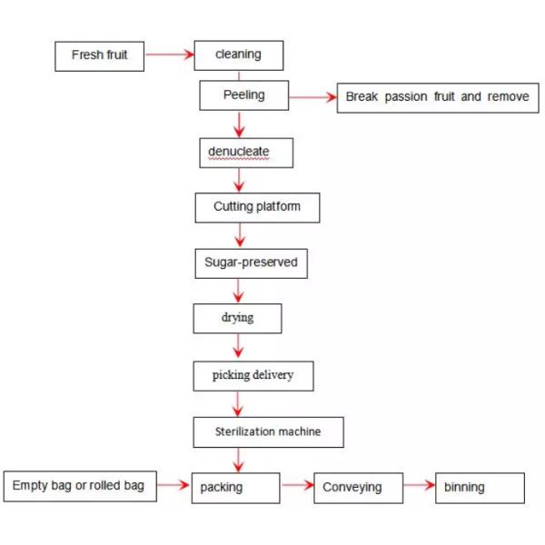 Process flow for Passion fruit, dried mango