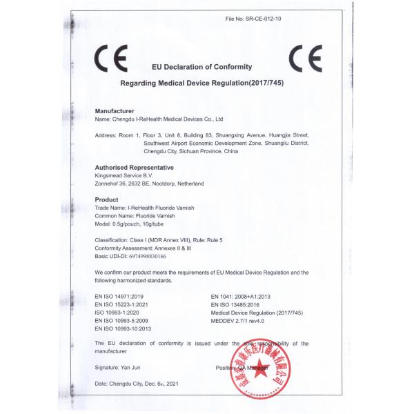 I-ReHealth Fluoride Varnish is a kind of fluorine protective paint based on natural resin, which is specially used to prevent dental caries, restore teeth and demineralize early, and improve the acid resistance of enamel. Fluoride Varnish protective paint has been clinically proved to be one of the most effective caries prevention measures.