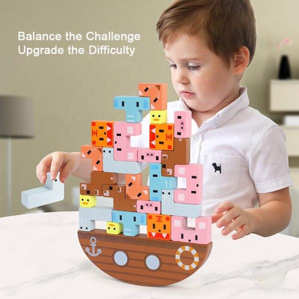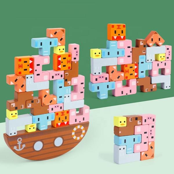 Children's Wooden Montessori Toys Animal Balance Stacks Games Early Education Benefit Intelligence Building Blocks