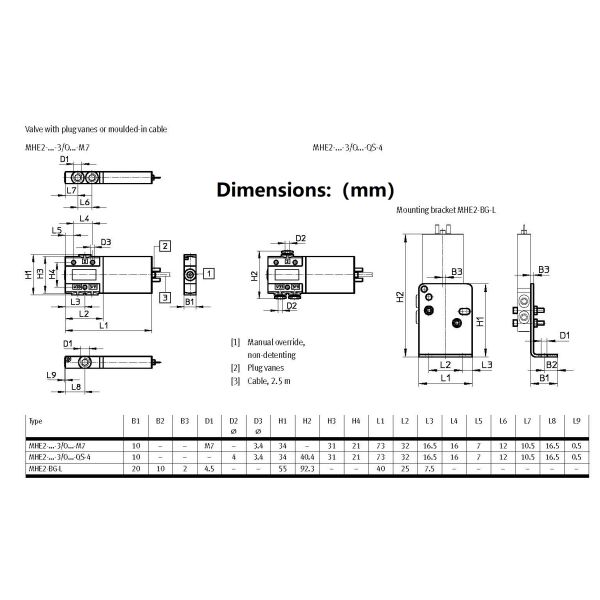 | MHE3 | Solenoid valve MHE3 | 2 | Sub-base, nominal width 2 mm | ||