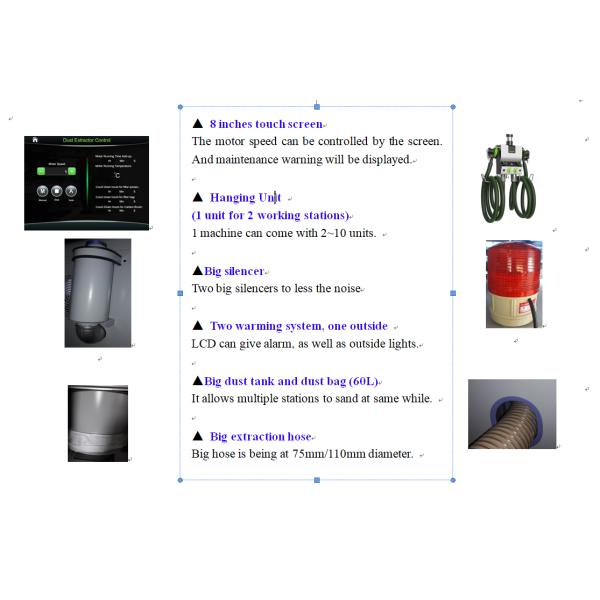 2. The machine automatically extracts the dust when sanding. 5.5KW/7.5KW/11KW available. Maximum for 20 stations.