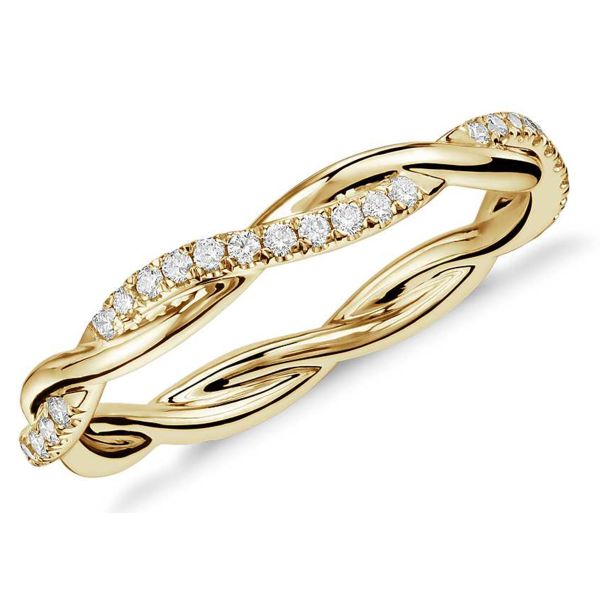 0.44ct Twist Link Pave Half Diamond Ring in 14K Yellow Gold Jewelry