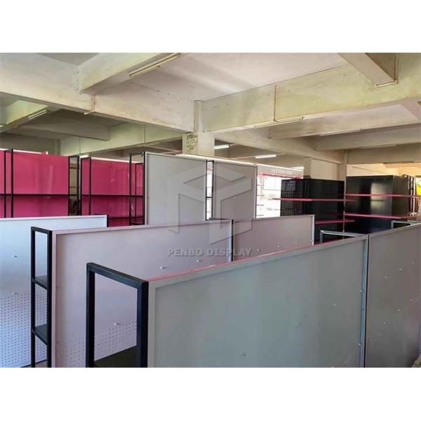 Main material: Stainless Steel with electroplates customized colors; All of our materials used we used are with cerfiticate reaching to world standard. All materials and colors and sizes can be tailored made. We combine the punching holes panels with the clothing hanging bars to create a new design for our customer for practical functions. You can hang your clothes on the bars. You can also put your accessories on the hooks. Nowadays there are more and more different products sale in one store. This design and our design service can meet your different inquiries.