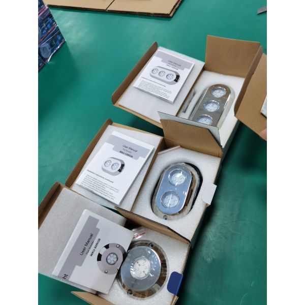 | 1. LED Chip Brand:CREE 2. Working Voltage(V):Single color DC9-32V(built-in Driver) RGB color DC 12V 3. Emitting Angle of Peak(θ):120 4. Unit:Piece 5. Package Size(cm):13*18*6 6. Product Description:Internal drive 7. Waterproof Level:IP68 8. Case Material:316L Marine Stainless Steel 9. Warranty:3 years | ||||||||