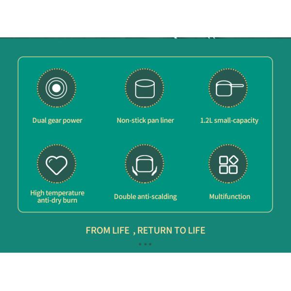 1.2L all-in-one small electric cooker. Combines steaming, frying, frying, frying, boiling, stewing, braising, hot pot, teppanyaki and other multi-functions in one. The dual-gear power can be switched back and forth to meet all needs. Adopt food-grade non-stick inner tank, high temperature and dry-burn prevention, double-layer anti-scalding design. The detachable power cord is more intimate and convenient for storage. The transparent glass cover allows you to watch the cooking at any time. Heat dissipation holes at the bottom, fast heat dissipation and high efficiency.
