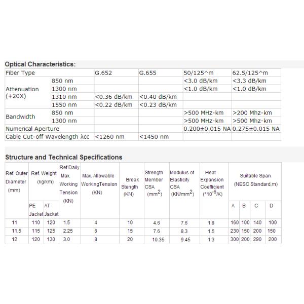 3.Light weight and small diameter reducing the load caused by ice and wind and the load on towers and backprops.