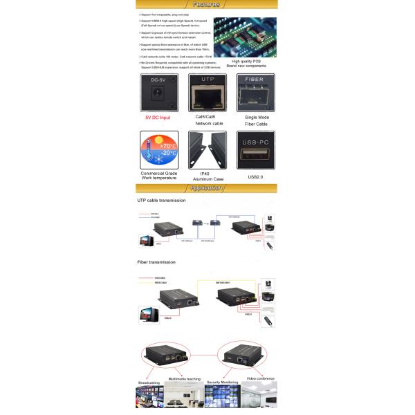 ► Support optical fiber extension of 6km, of which USB