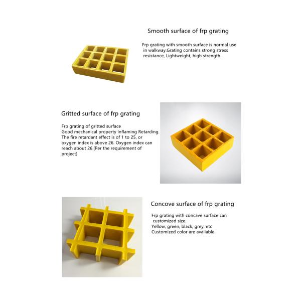 FRP grating is one kind of new composite material, made of different resins reinforced with fiberglass, by molded technology. It is widely used in operation platform, checking and repairing walkway, drilling platform, terrace, stair step, equipment walkway, trench cover, pedestrian overpass, filler support, deck of a ship, falsework, ventilation fence, rail, corrosion resistance shelf, etc.
