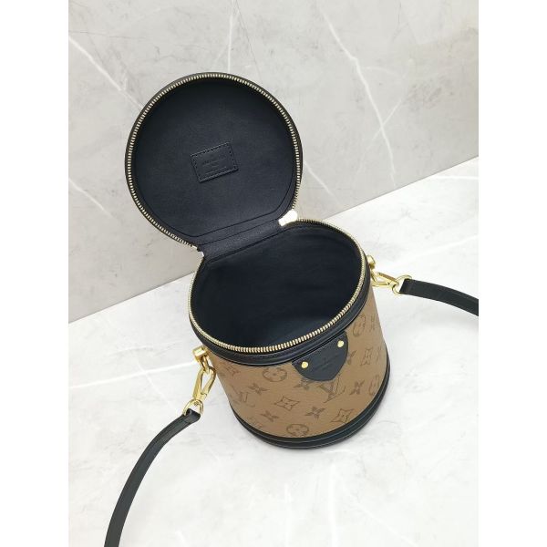 Featuring the historical shape of the LV Cannes beauty case, designer Nicolas Ghesquière revives a long-standing classic with the Cannes handbag. Petite in size and presented in a mix of Monogram and Monogram reverse coated canvas, the elegant piece reanimates a traditional silhouette steeped in Louis Vuitton heritage. A removable leather strap and top handle provide a range of carrying options.